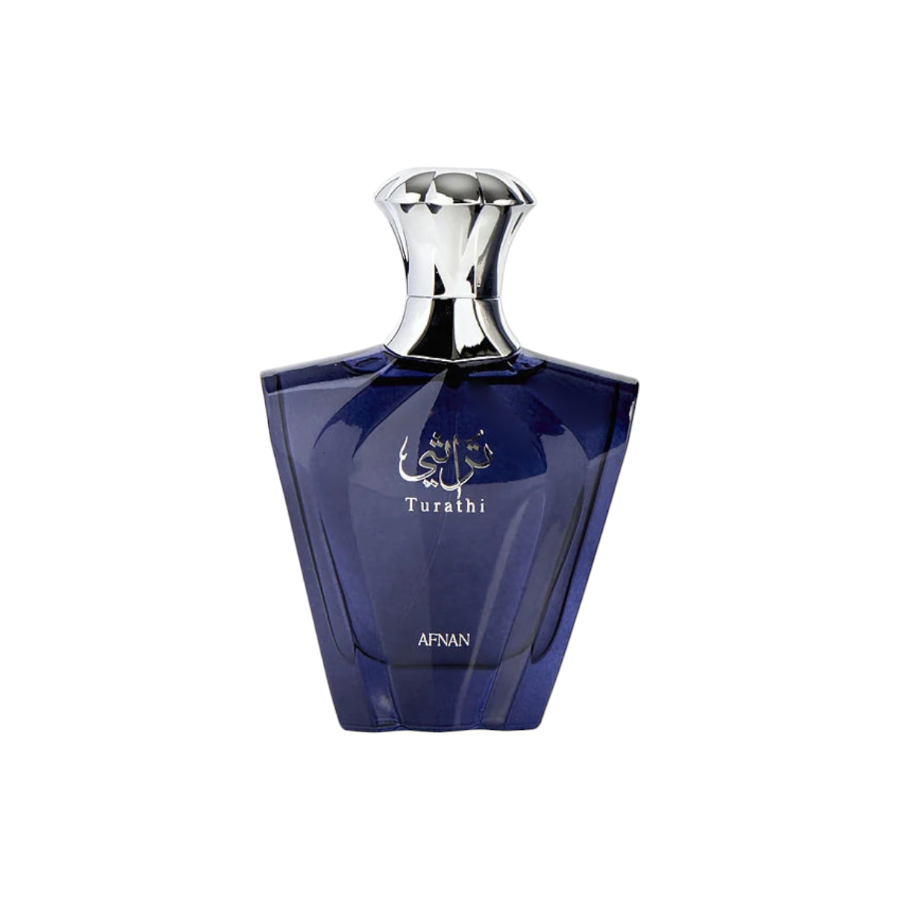 Turuthi Blue, launched in 2021 by Afnan, is a woody, musky, warm fragrance for men. It opens with citrus notes, with amber and woodsy hints in the middle, and a base of patchouli, spices, and musk.